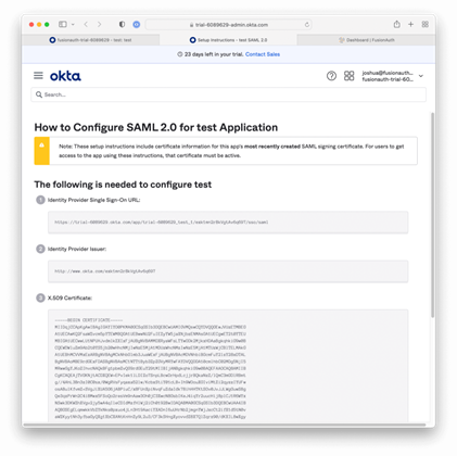 - Click the "View SAML setup instructions" under the "Sign On" tab. This will open a new window.