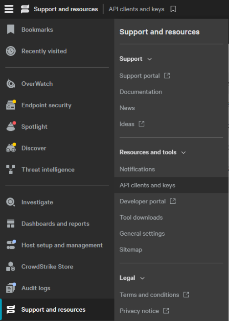 Go to Support and Resources then API clients and keys