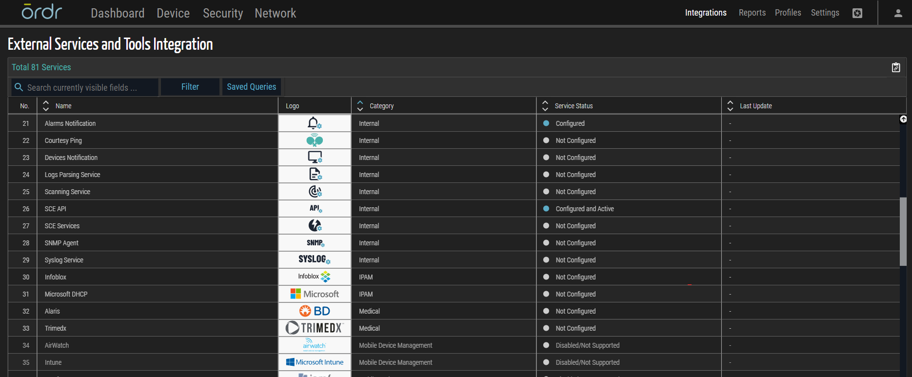 The Ordr integration will pull devices and vulnerabilities discovered by Ordr or reported by Ordr integrations.